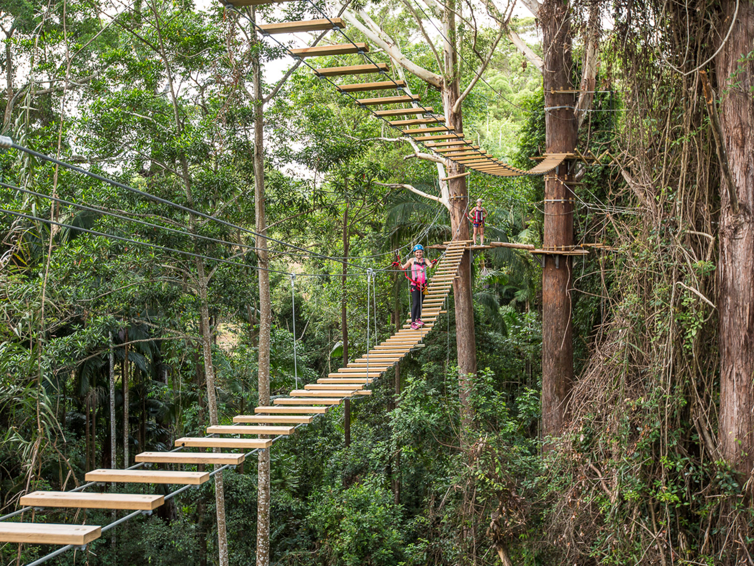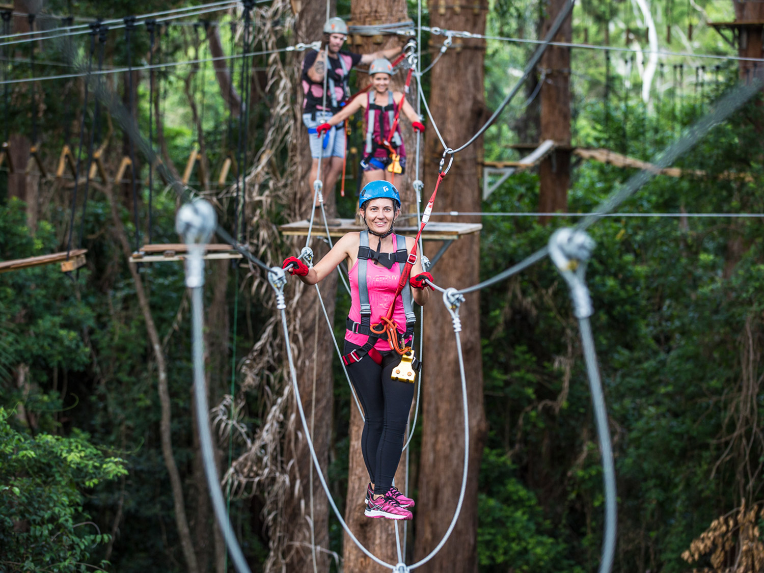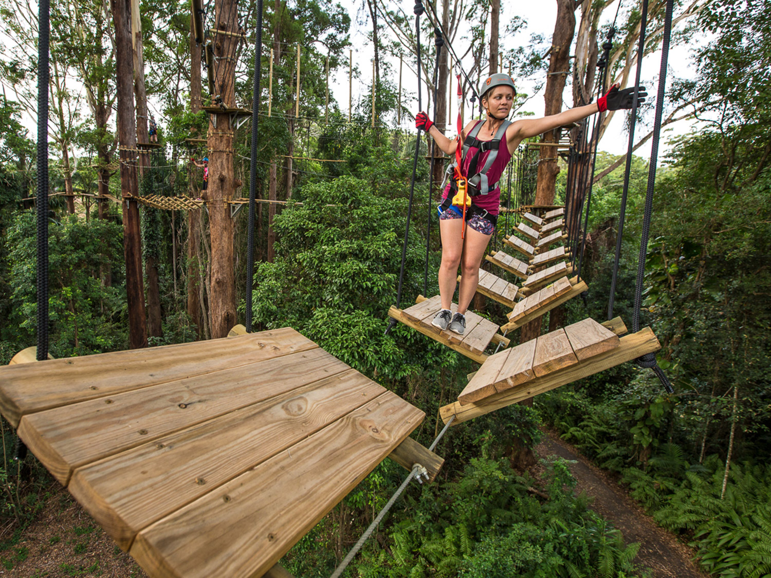 Discover Australia’s highest adventure park! Tackle 120 epic challenges and 12 massive flying foxes across 6 amazing courses. Reaching heights of 35m, you’ll glide on ziplines up to 140m long. Starting easy and building to extreme thrills, it’s the ultimate high-ropes experience for ages 8 and up